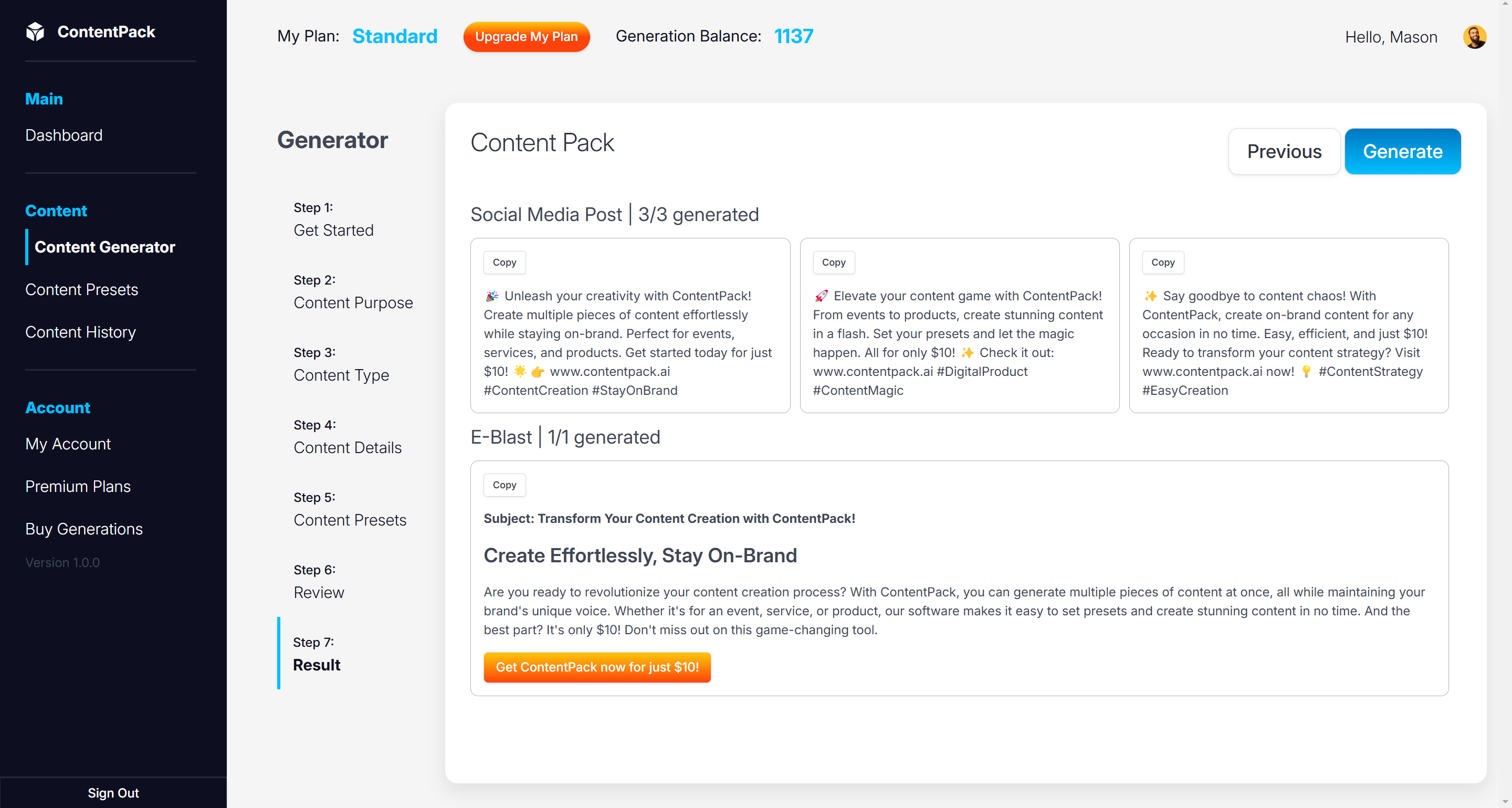 "ContentPack is the first platform I've seen that doesn't charge for tokens. Using "Generations" is so much easier!"